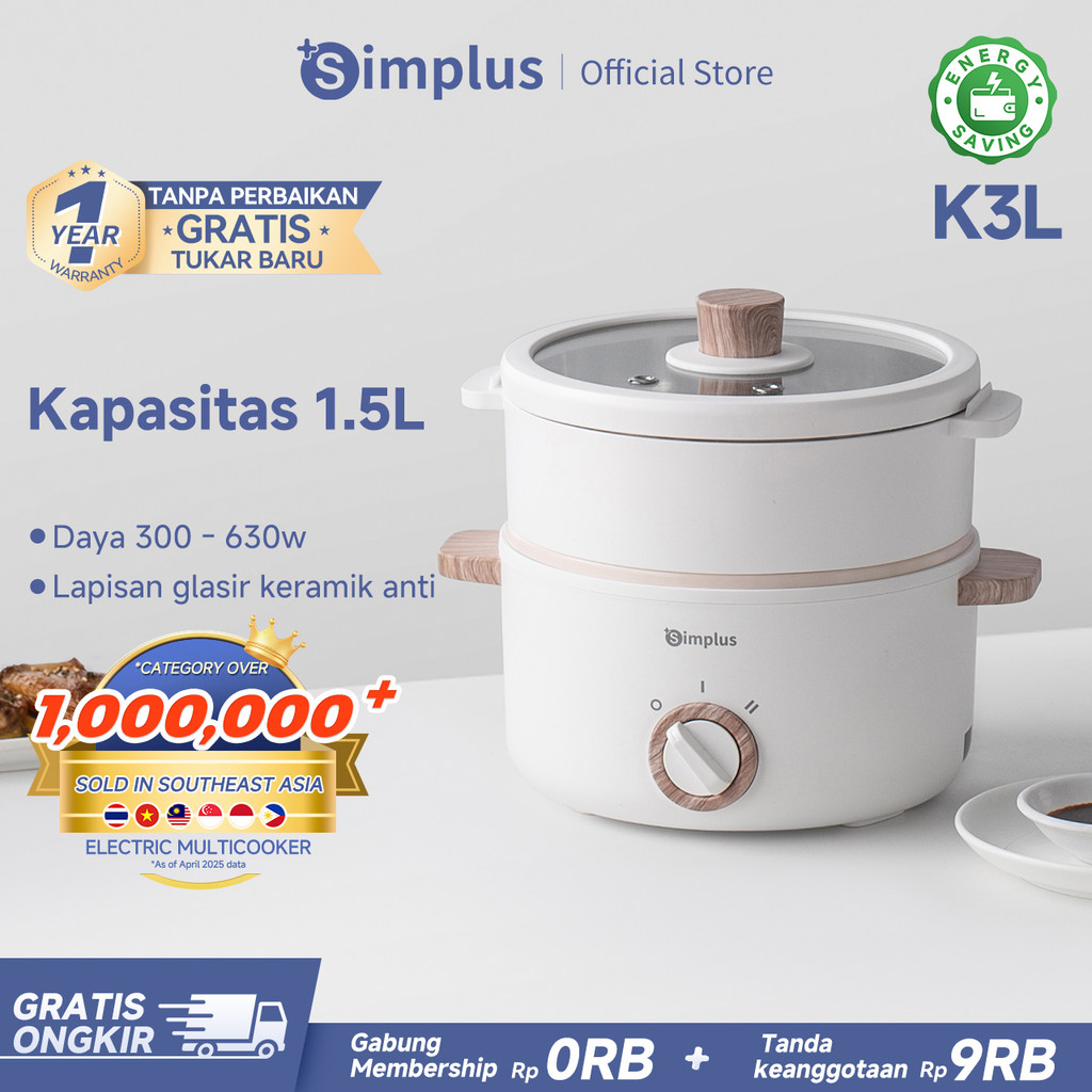 SIMPLUS PANCI LISTRIK KAPASITAS 1.5L PANCI SERBAGUNA ANTI LENGKET DENGAN KUKUSAN 2 MODE PANAS