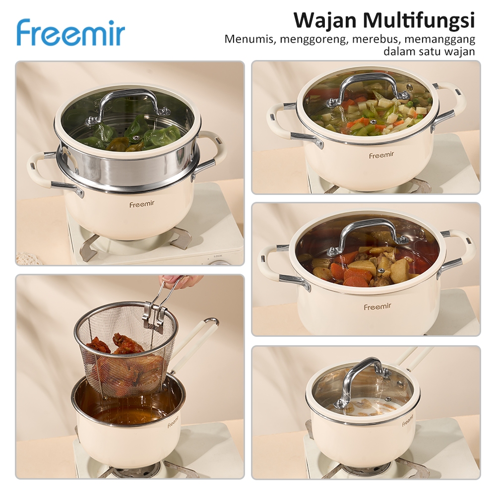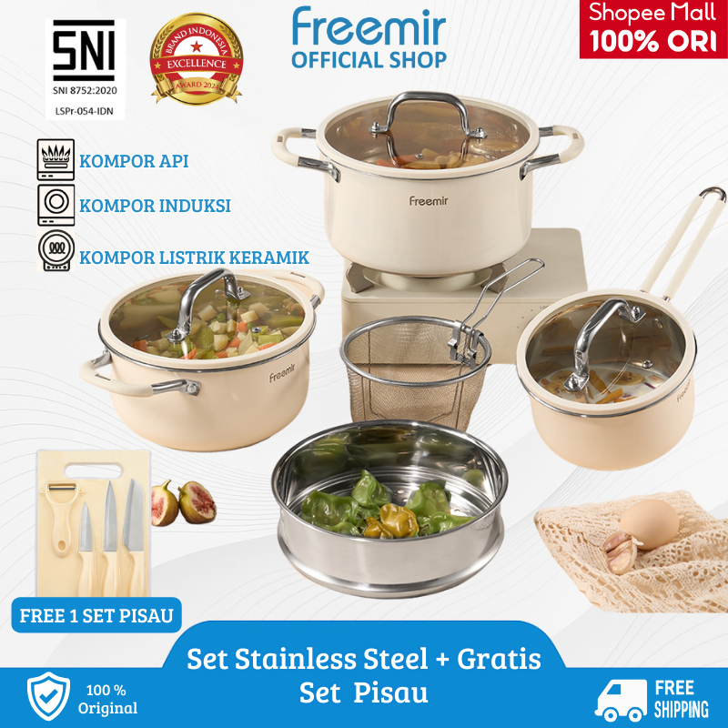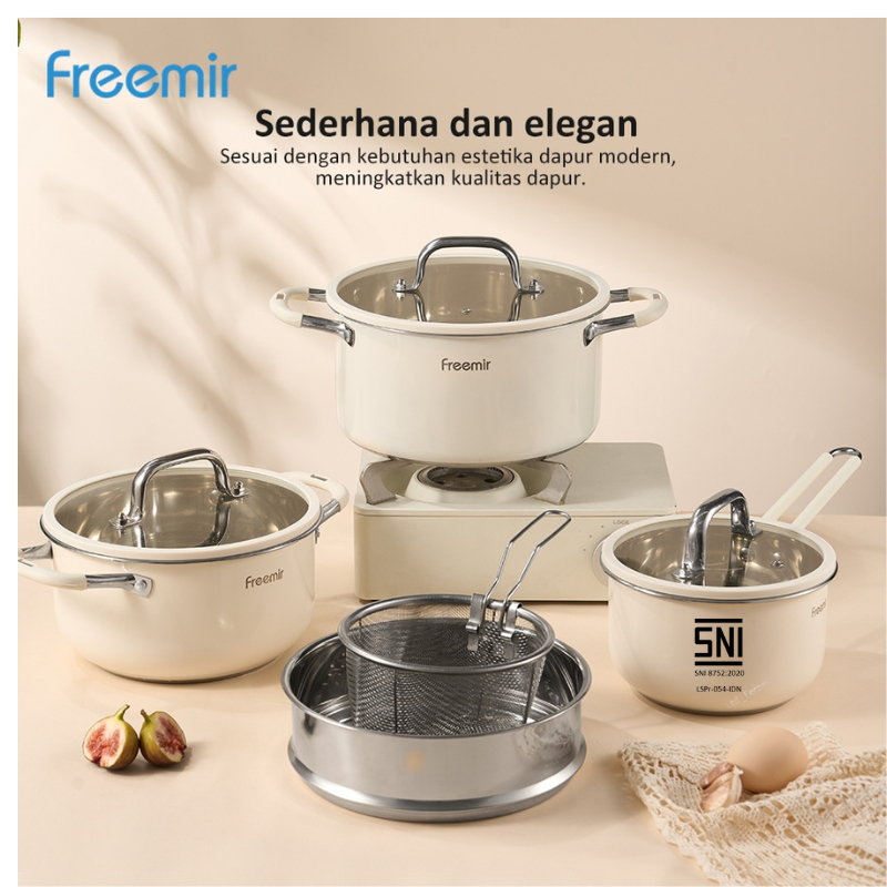 FREEMIR PANCI SET 8 PCS LENGKAP ANTI LENGKET /0-COATING SET STEAMER STAINLESS STEEL PANCI SUSU DENGAN TUTUP KACA GRATIS SET P1SAU