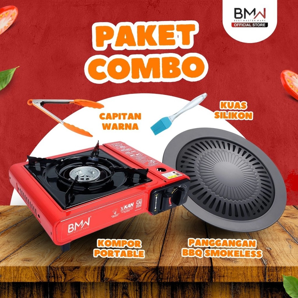 BMW KITCHENWARE PAKET PANGGANGAN 1 PCS PANGGANGAN BBQ GRILL ANTI LENGKET ANTI KARAT + KOMPOR PORTABLE SERBAGUNA
