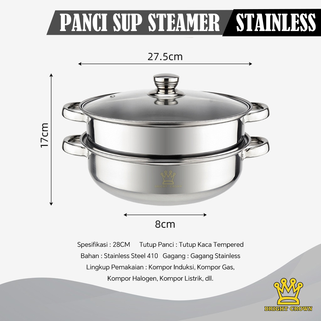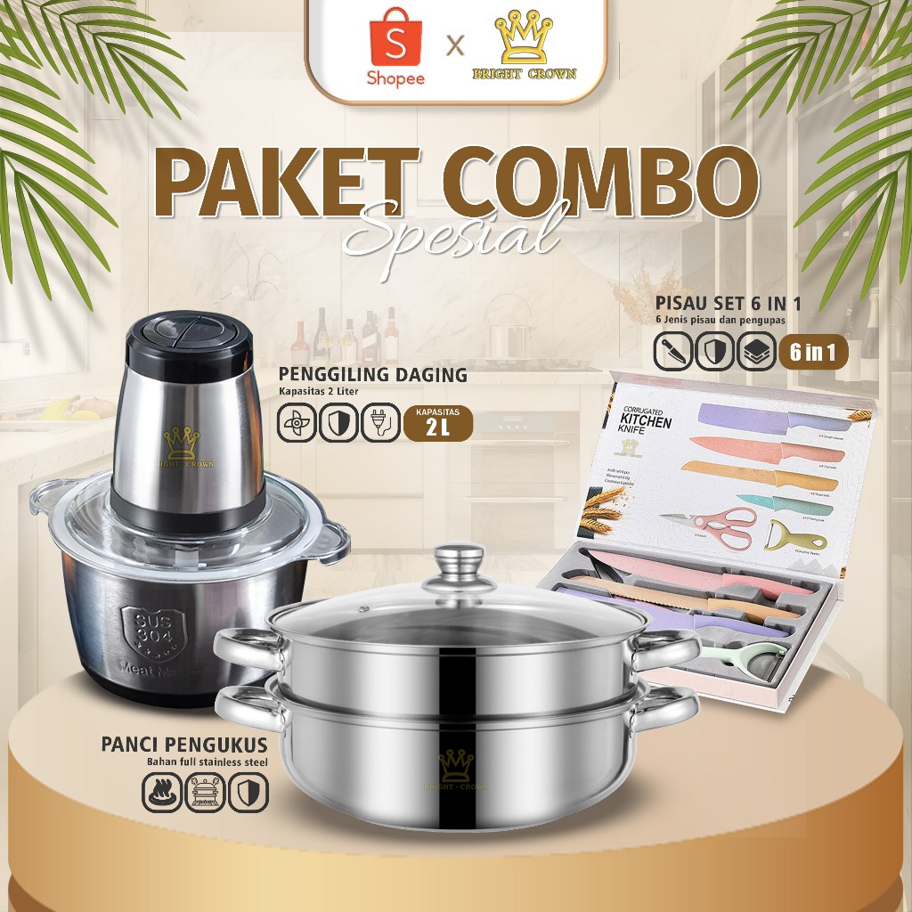 YATT BY BRIGHT CROWN PAKET SPESIAL CHOPPER STAINLESS 2L+PANCI STEAMER 28CM STAINLESS+P1SAU DAPUR SET