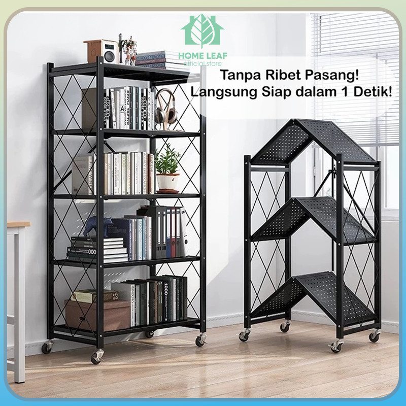 HOME LEAF RAK LIPAT SERBAGUNA 3-5 SUSUN INSTALASI INSTAN STAINLESS STEEL ANTI KARAT PORTABEL & KOMPAK UNTUK DAPUR/OUTDOOR