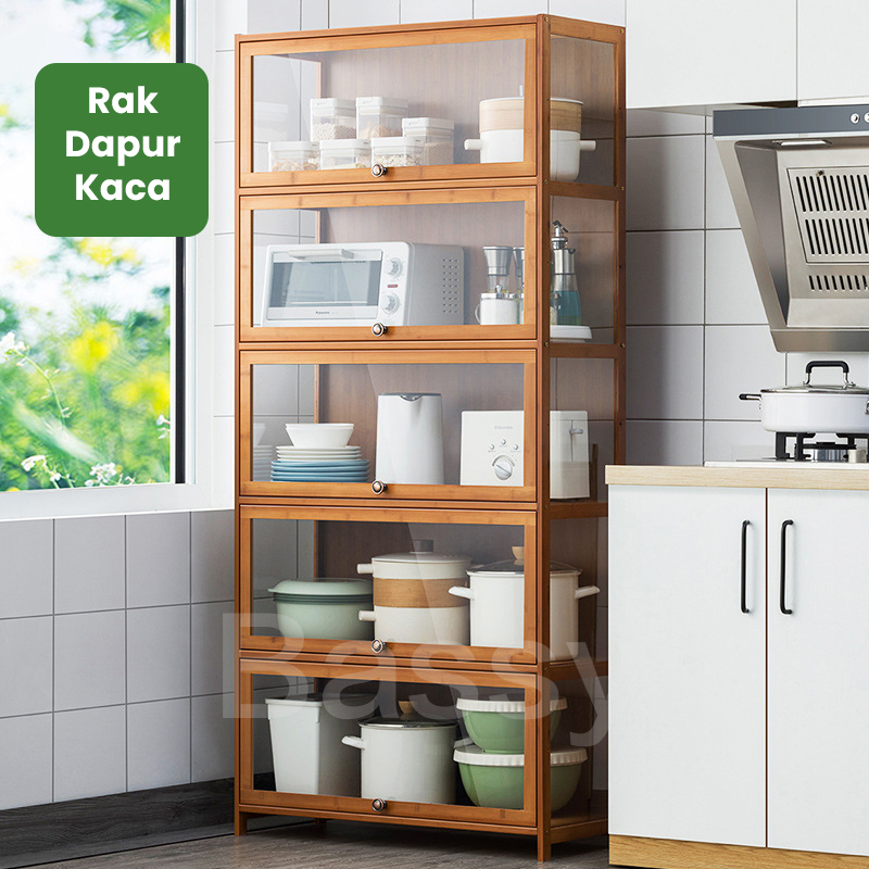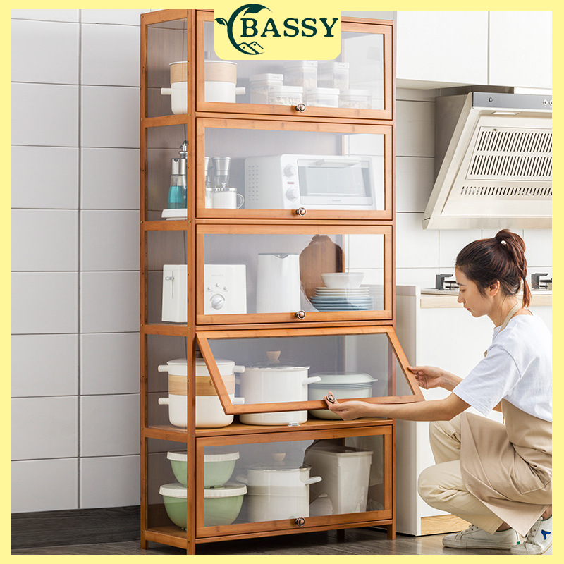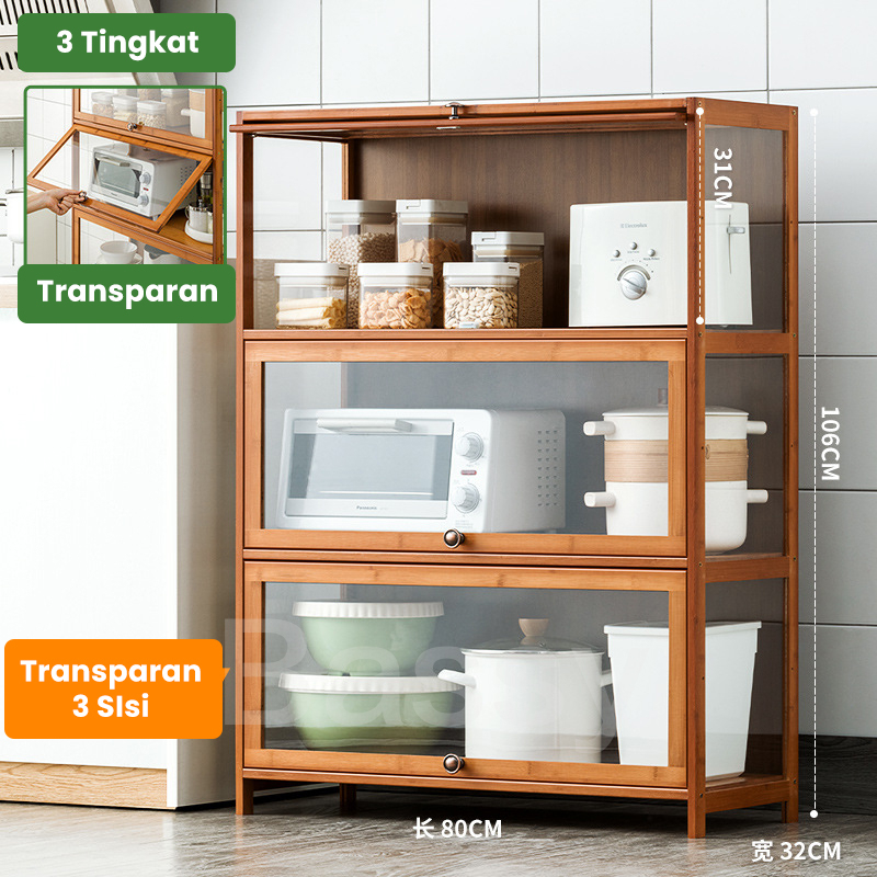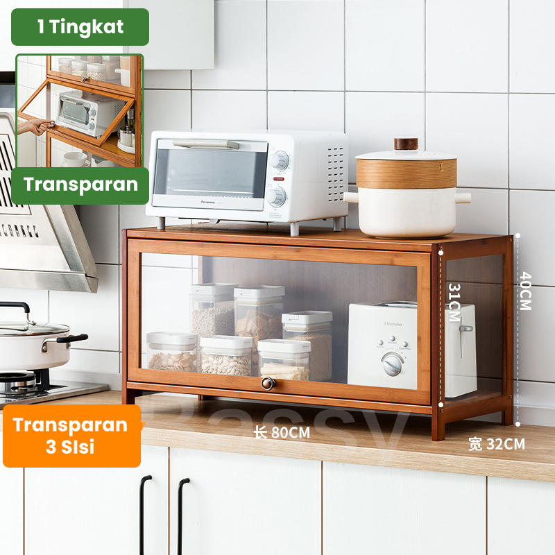 BASSY RAK LEMARI KAYU SUSUN ANTI DEBU RAK OVEN MICROWAVE RAK SUSUN LAYER PENYIMPANAN KABINET TEMPAT PERALATAN DAPUR HSB405