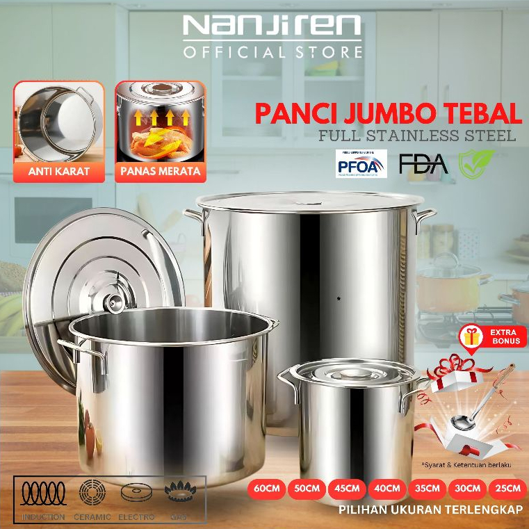NANJIREN PANCI TEBAL TINGGI BESAR STOCKPOT DANDANG STAINLESS STEEL + LID 25/30/35/40/45CM