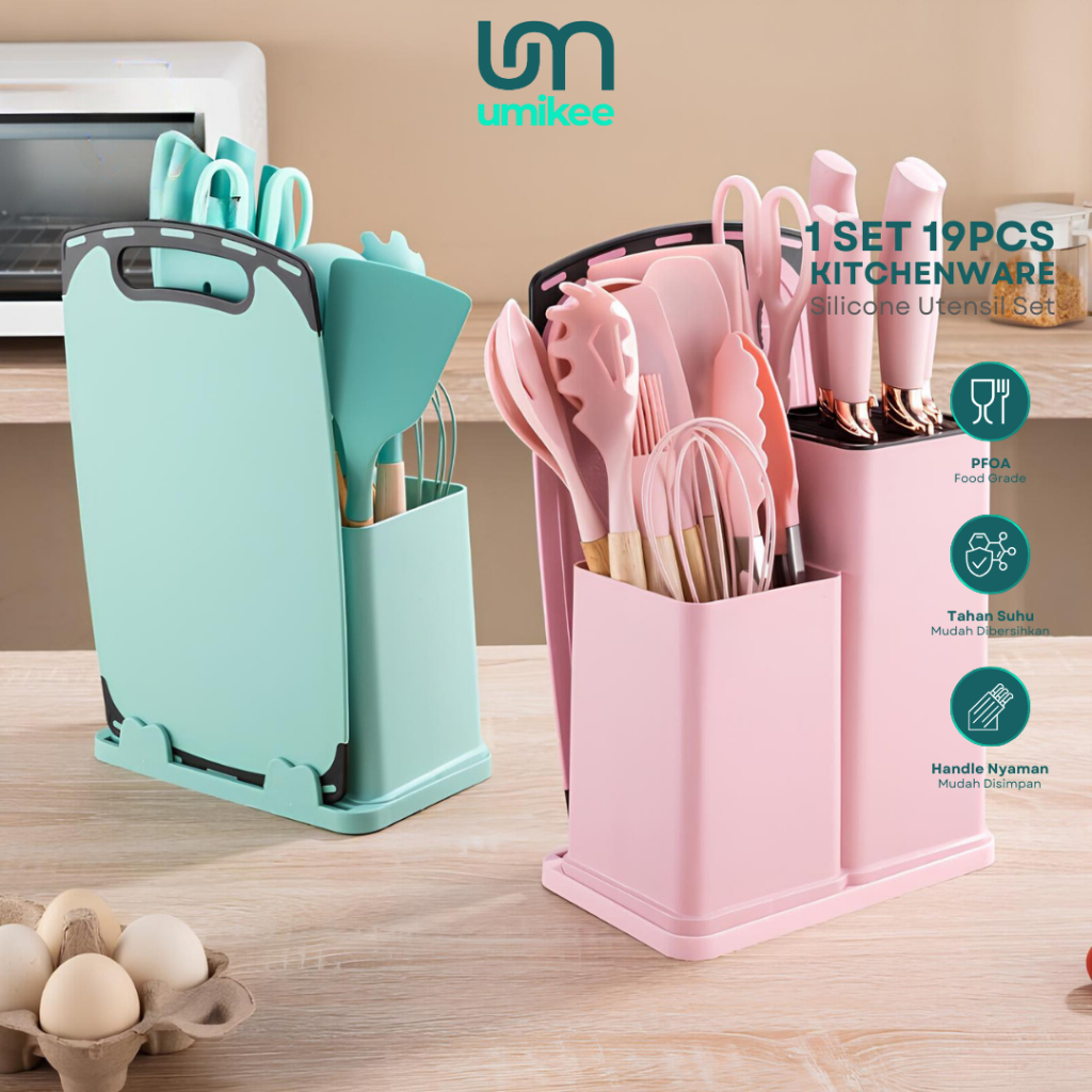 UMIKEE SET 19 IN 1 SPATULA SILIKON PREMIUM + TALENAN SERBAGUNA PERLENGKAPAN DAPUR MULTIFUNGSI