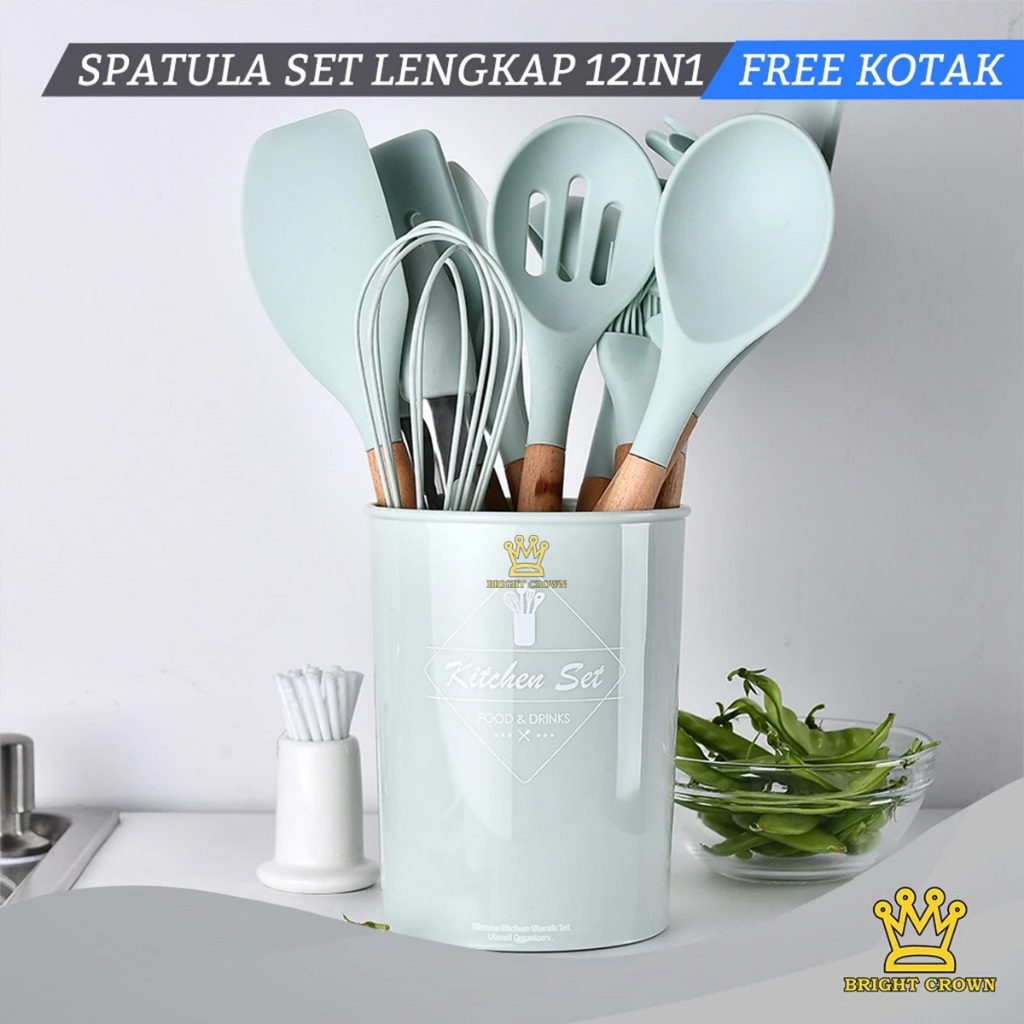 BRIGHT CROWN PAKET COMBO RAK BUMBU DAPUR FREE 6 PCS SENDOK BUMBU + SPATULA SILICONE 11PCS + WADAH