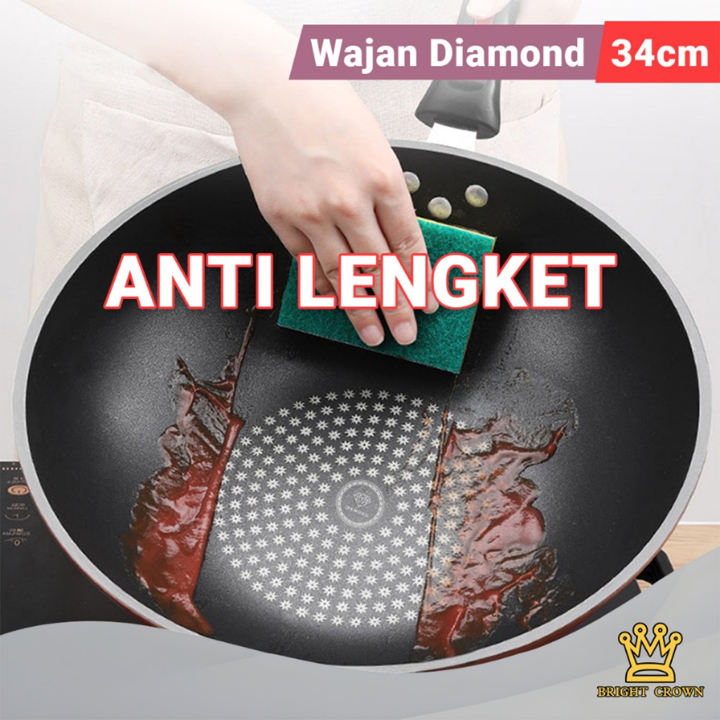 BRIGHT CROWN PAKET DAPUR WAJAN DIAM0ND 34CM + CHOPPER STAINLESS 2L + SQUARE GRILL PAN PANCI
