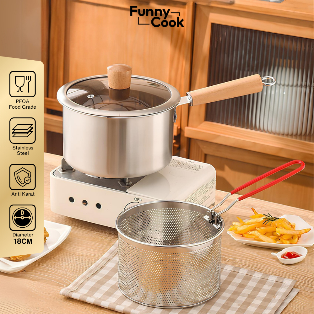SPECIALFUNNYCOOK 4 IN 1 DEEP FRYER KENTANG SARINGAN MINYAK MULTIFUNGSI + CAPITAN & TUTUP KACA