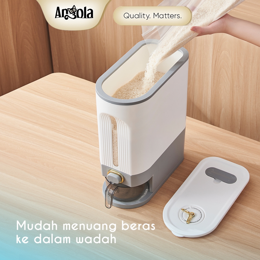 ANGOLA DISPENSER BERAS OTOMASI ANTI KUTU 10KG E18 TEMPAT BERAS GRATIS MANGKOK CUCI BERAS/RICE BUCKET