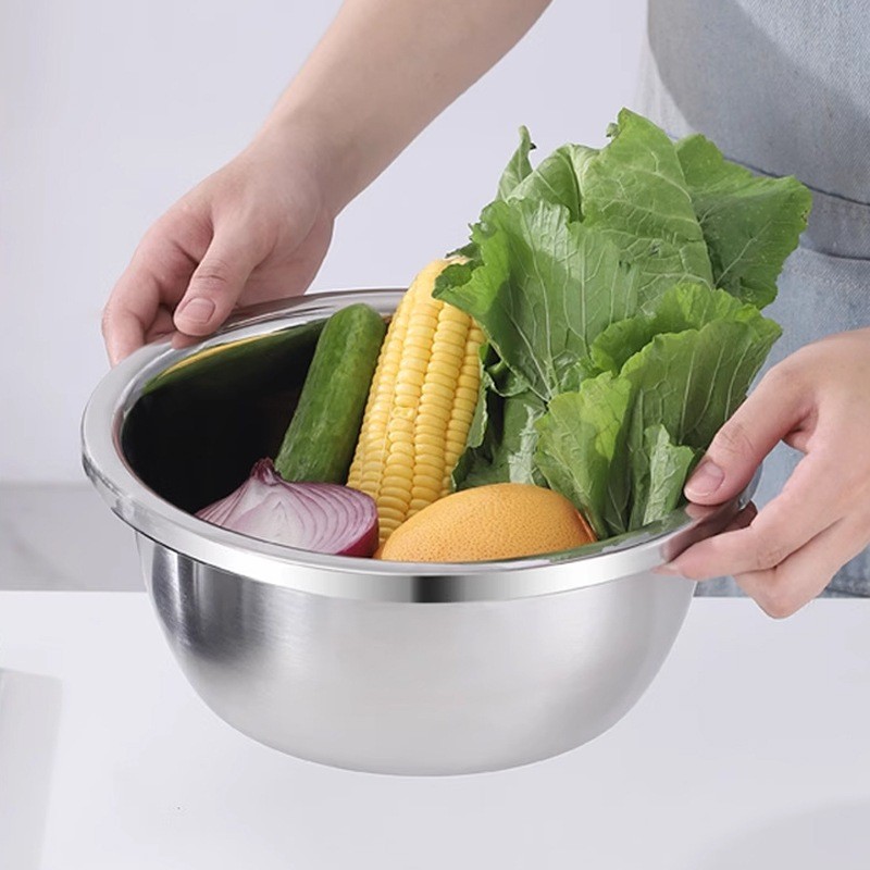 BMW KITCHENWARE BASKOM MASAK SERBAGUNA BAHAN STAINLESS STEEL TEBAL 1 SET ISI 5 PCS MIXING BOWL BASKOM CUCI BUAH SAYUR BERAS