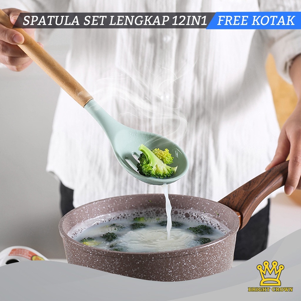 BRIGHT CROWN PAKET MENANG BANYAK SPATULA SILICONE SET TAHAN PANAS 12 PCS + P1SAU DAPUR SET 6 IN