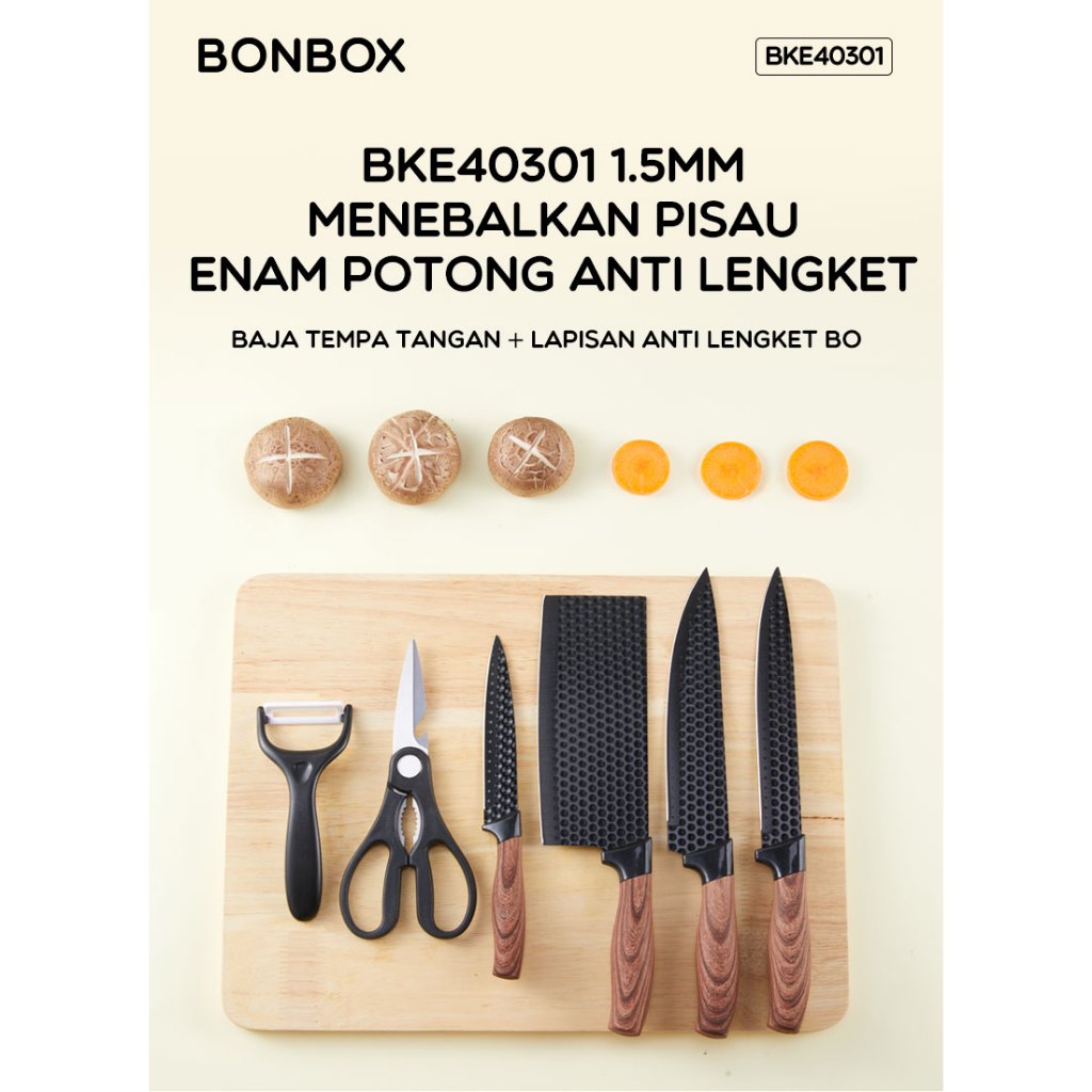 BONBOX P1SAU DAPUR SET ISI 6 IN 1 KITCHEN KNIFE SET HITAM P1SAU DAPUR SERBAGUNA WARNA HITAM UNTUK KEBUTUHAN DAPUR