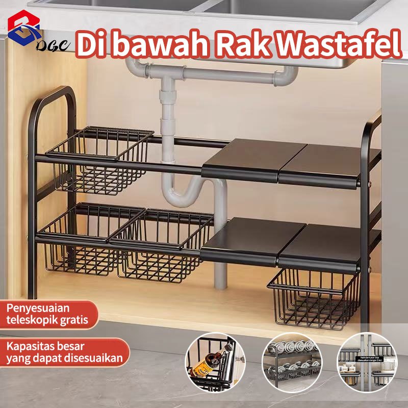 DGC RAK BAWAH WASTAFEL RAK PANCI RAK PENYIMPANAN DAPUR RAK BUMBU DAPUR PORTABLE STAINLESS