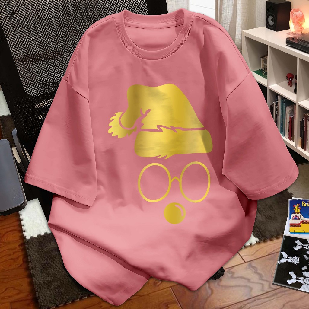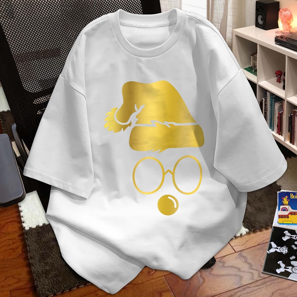 LYKKE Kaos Natal T-shirt Baju Kaos Merry Christmas I Santa Claus Hat Siluet kuningan mengkilap I Atasan Distro Xmas Rohani Seragam Couple Keluarga Natal 2025 Atasan Katun A6416