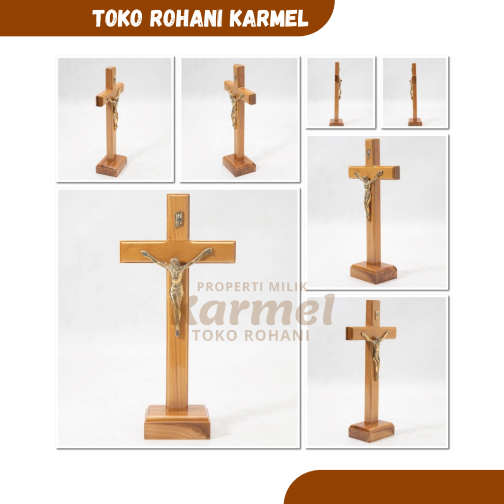 SALIB DUDUK KATOLIK KORPUS KUNINGAN (15-30CM) / SALIB MEJA KATOLIK / PATUNG SALIB / SALIB ALTAR KORPUS KUNINGAN