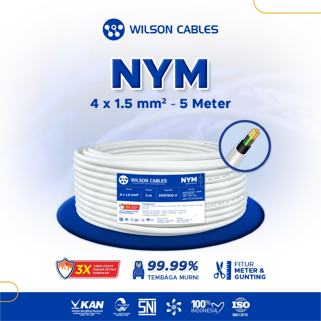 WILSON CABLES NYM 4x1 5 mm² 5 Meter Kabel Tembaga Kawat