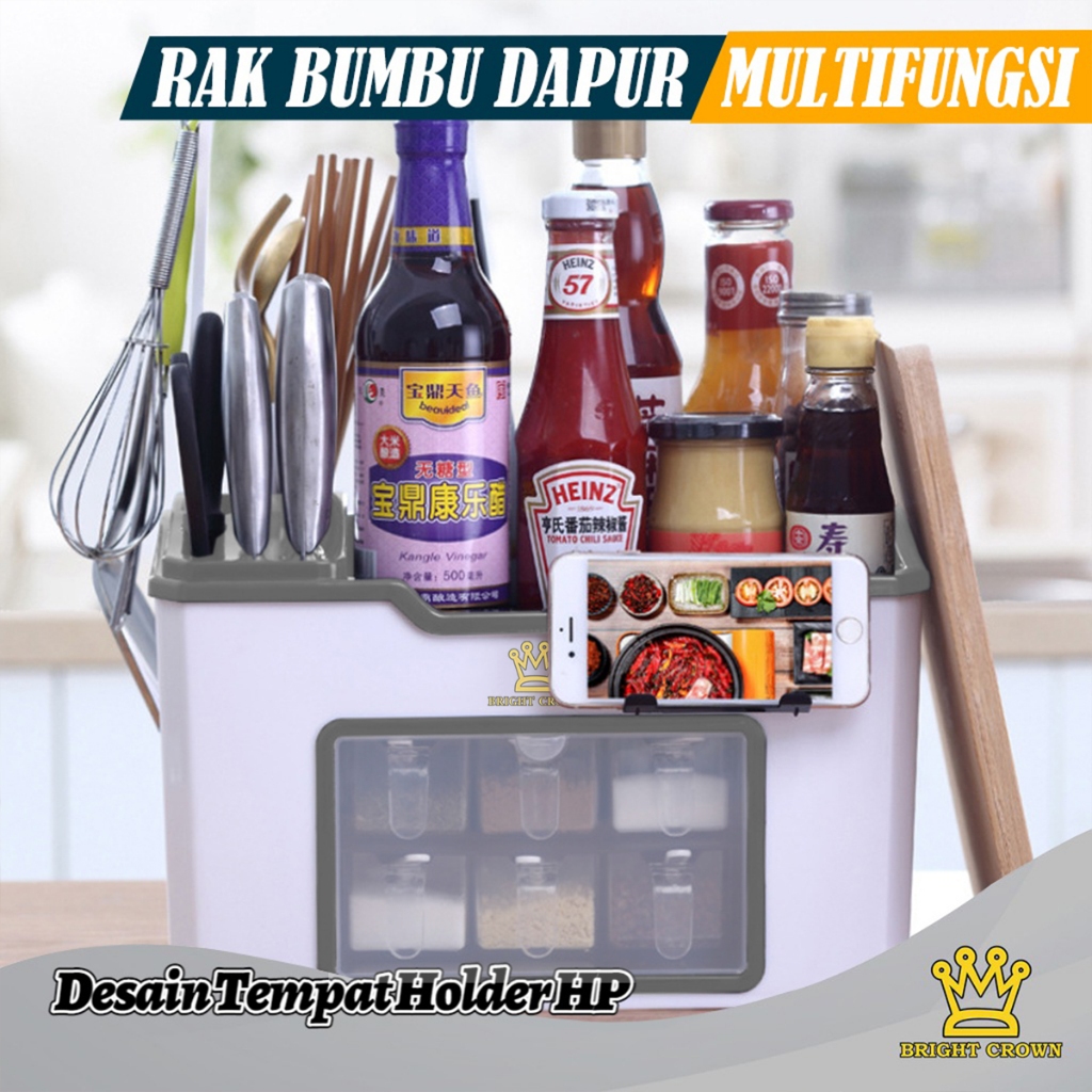BRIGHT CROWN PAKET COMBO RAK BUMBU DAPUR FREE 6PCS SENDOK + P1SAU DAPUR + OIL POT + BOTOL MINYAK