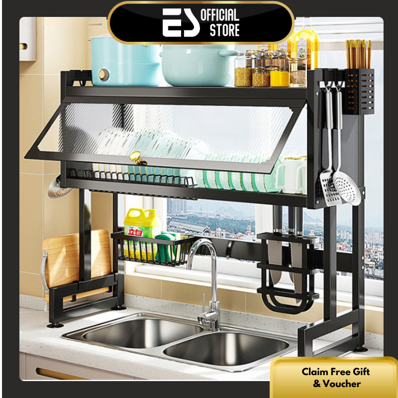 ES RAK PIRING WASTAFEL RAK DAPUR STAINLESS STEEL DENGAN PENUTUP KABINET RAK PENYIMPANAN PIRING