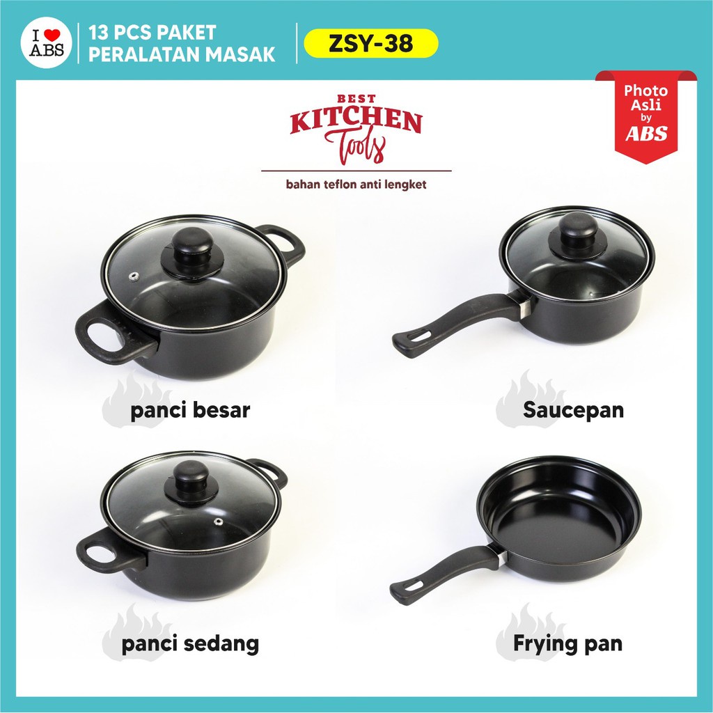BEBEHOME PERALATAN MASAK LENGKAP 13 PCS DALAM 1 SET COOKWARE PANCI SET WAJAN PENGGORENGAN SPATULA SET ISI 13PCS 1 SET