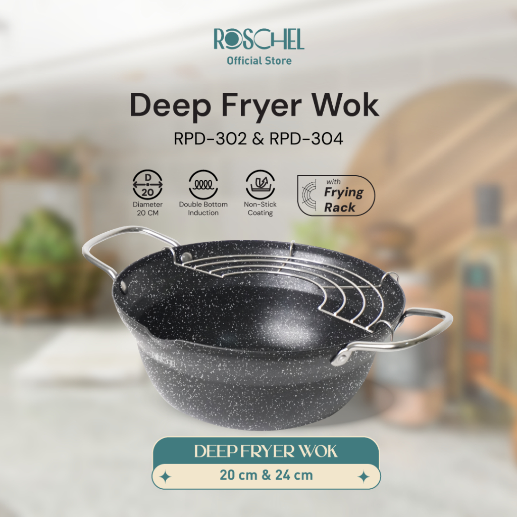 ROSCHEL DEEP FRYING WOK MARBLE NON STICK COATING DOUBLE BOTTOM INDUCTION PANCI WAJAN PENGGORENGAN STAINLESS ANTI KARAT