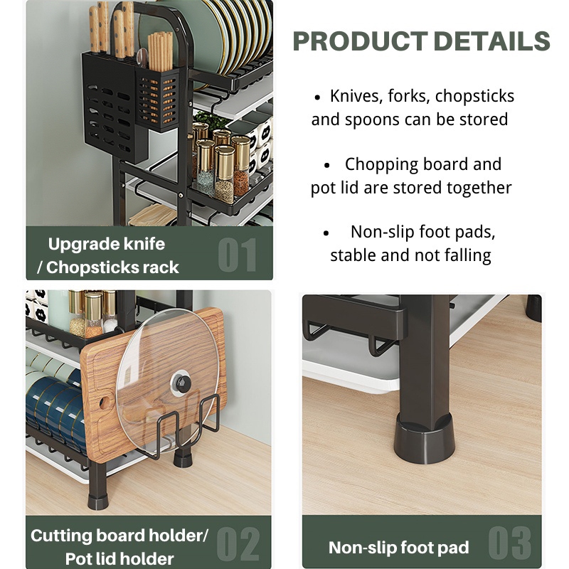 RAK PIRING STAINLESS STEEL RAK DAPUR CUCI PIRING WASTAFEL RAK PIRING PENYIMPANAN RAK PERALATAN DAPUR DENGAN AKSESORIS 2 SUSUN