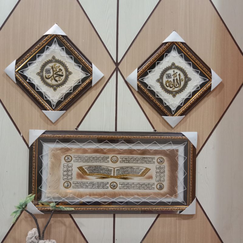 Kaligrafi 3in1 Kaligrafi Allah Muhammad & Ayat Kursi Kaligrafi Kulit Kambing