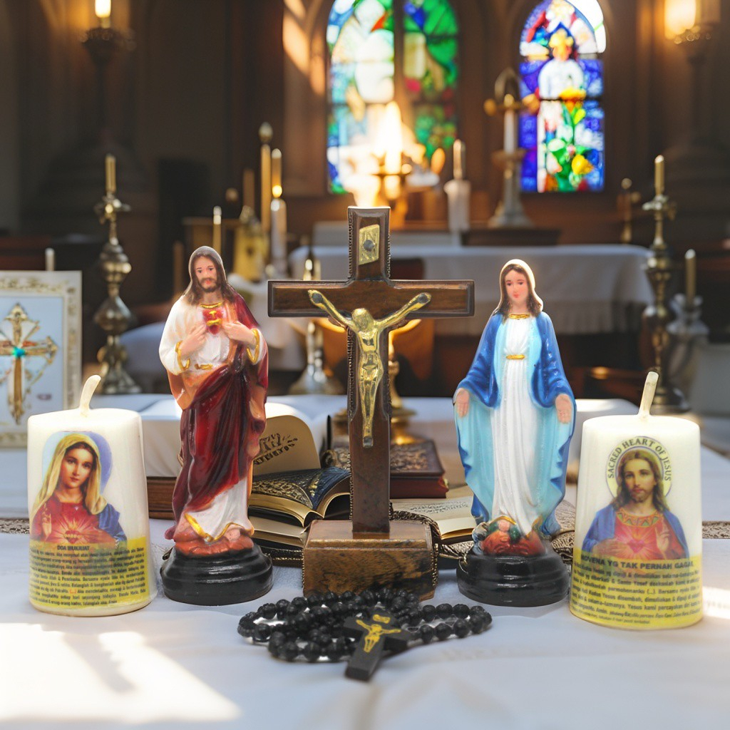 PAKET DOA KATOLIK (15 CM) / PATUNG BUNDA MARIA / SALIB DUDUK / ROSARIO KATOLIK / PATUNG YESUS