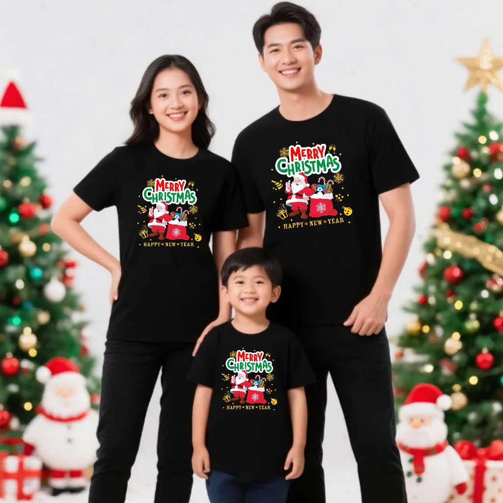 SANTA HAPPY NEW YEAR PAKAIN WANITA ATASAN KAOS MERRY CHRISTMAS NATAL FAMILY COUPLE ( HARGA SATUAN )