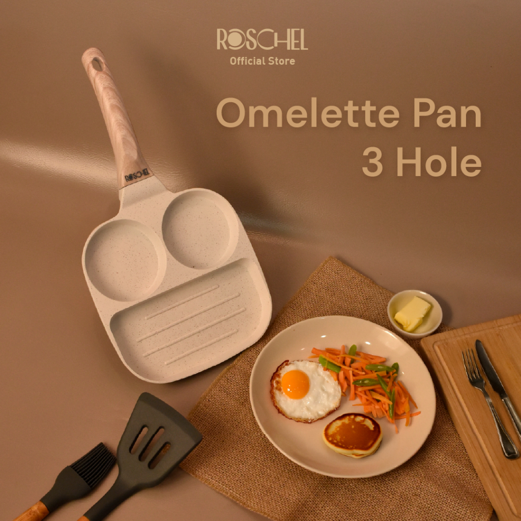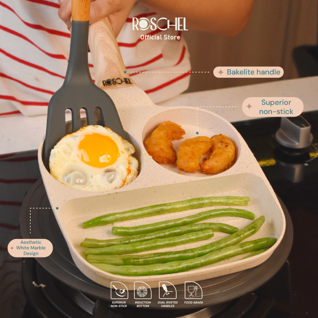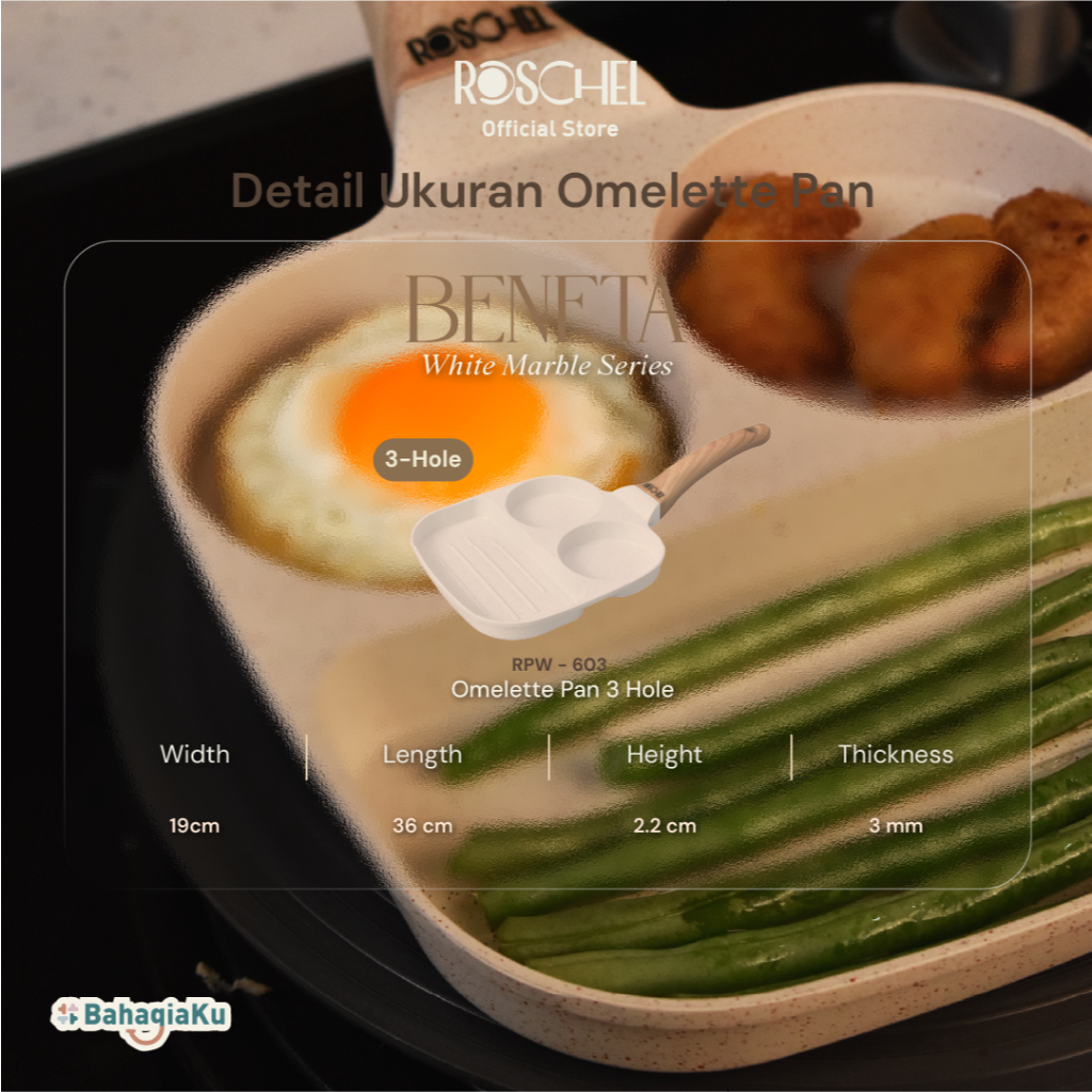 ROSCHEL BENETA WHITE MARBLE COATING NON-STICK OMELETTE PAN 3 4 LUBANG TAMAGO EGG PAN PANCI WAJAN PENGGORENGAN
