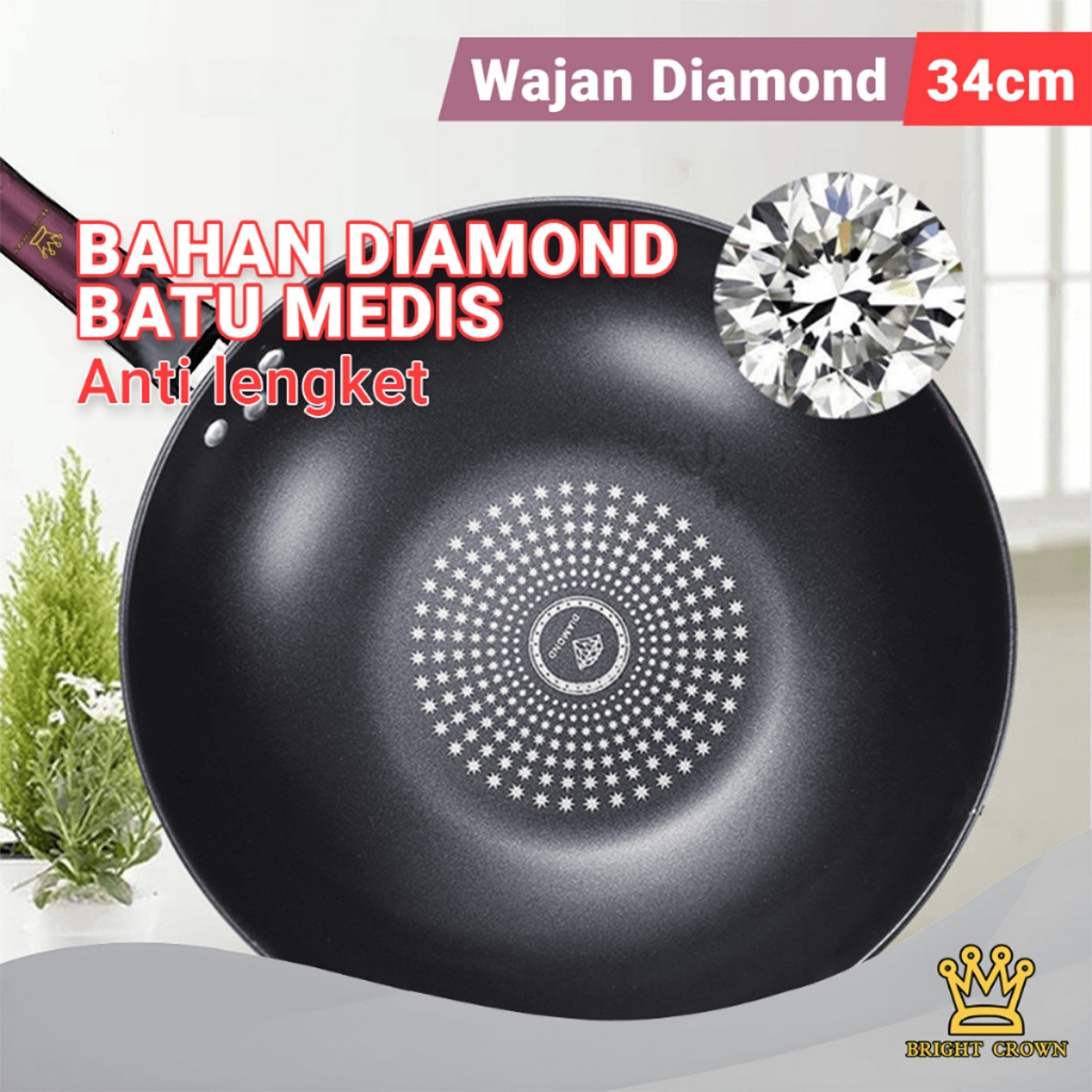 YATT BY BRIGHT CROWN SUPER HEMAT WAJAN PENGGORENGAN DIAM0ND 34CM+PANCI STEAMER 28CM+P1SAU DAPUR SET