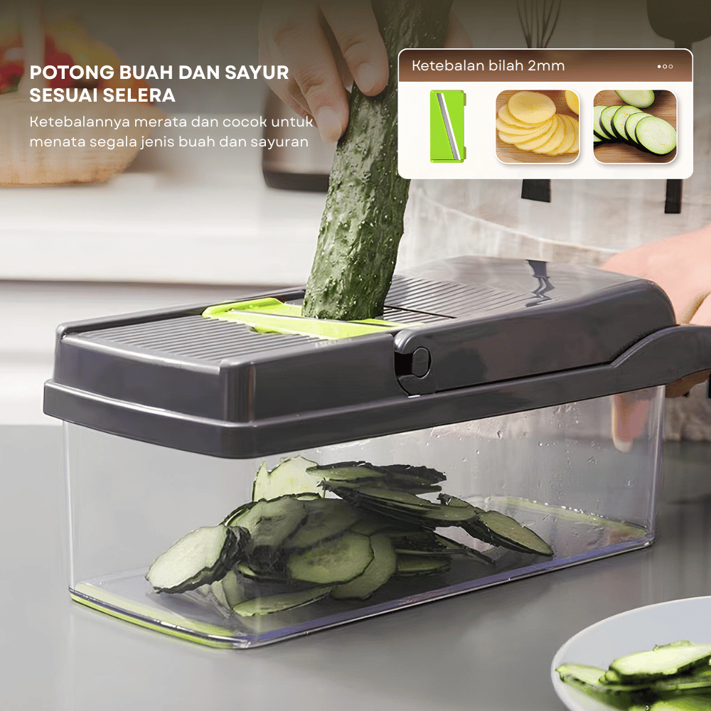 FUNKOO PARUTAN SAYUR DAN BUAH 16 IN 1 VEGETABLE CUTTER PREMIUM STAINLESS STEEL MULTIFUNGSI