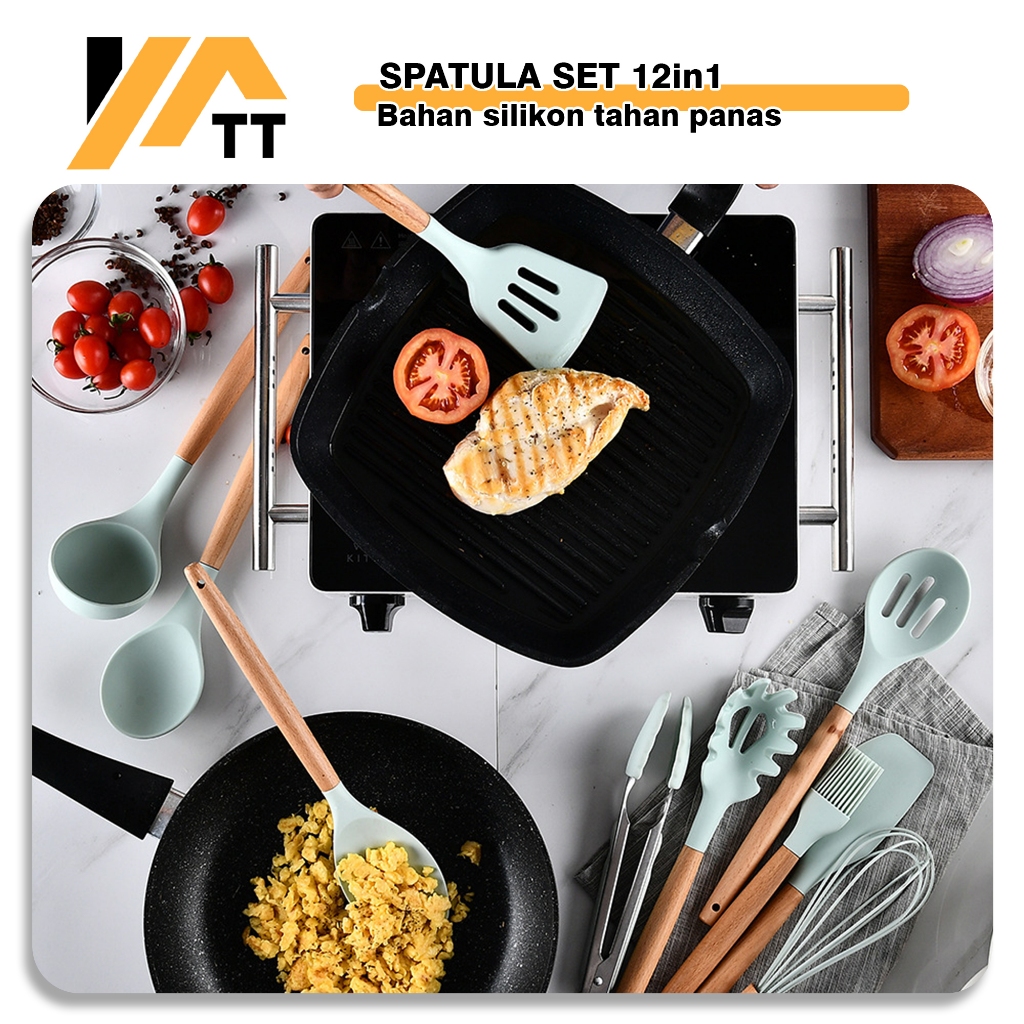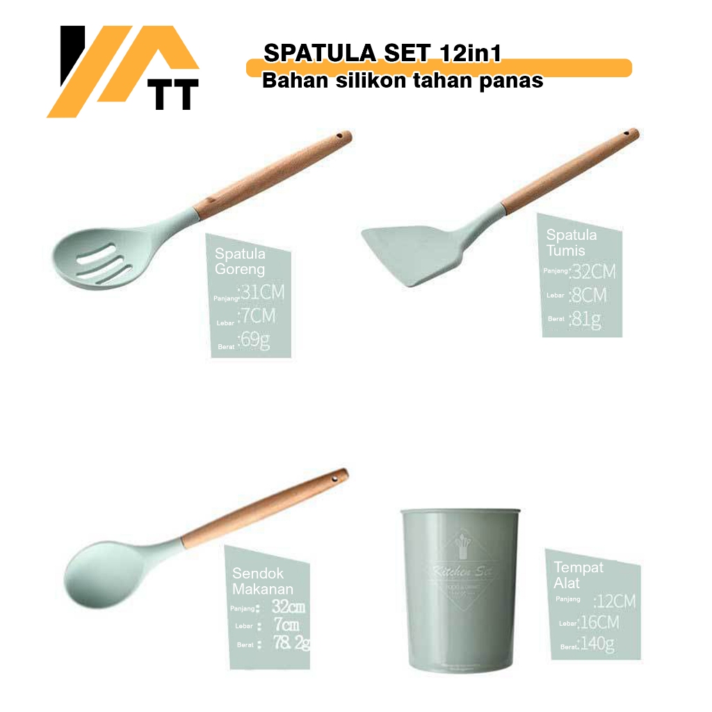 YATT COMBO HEMAT PERALATAN ALAT DAPUR SET SPATULA SILIKON 12IN1 TAHAN PANAS + P1SAU SET ISI 6PCS