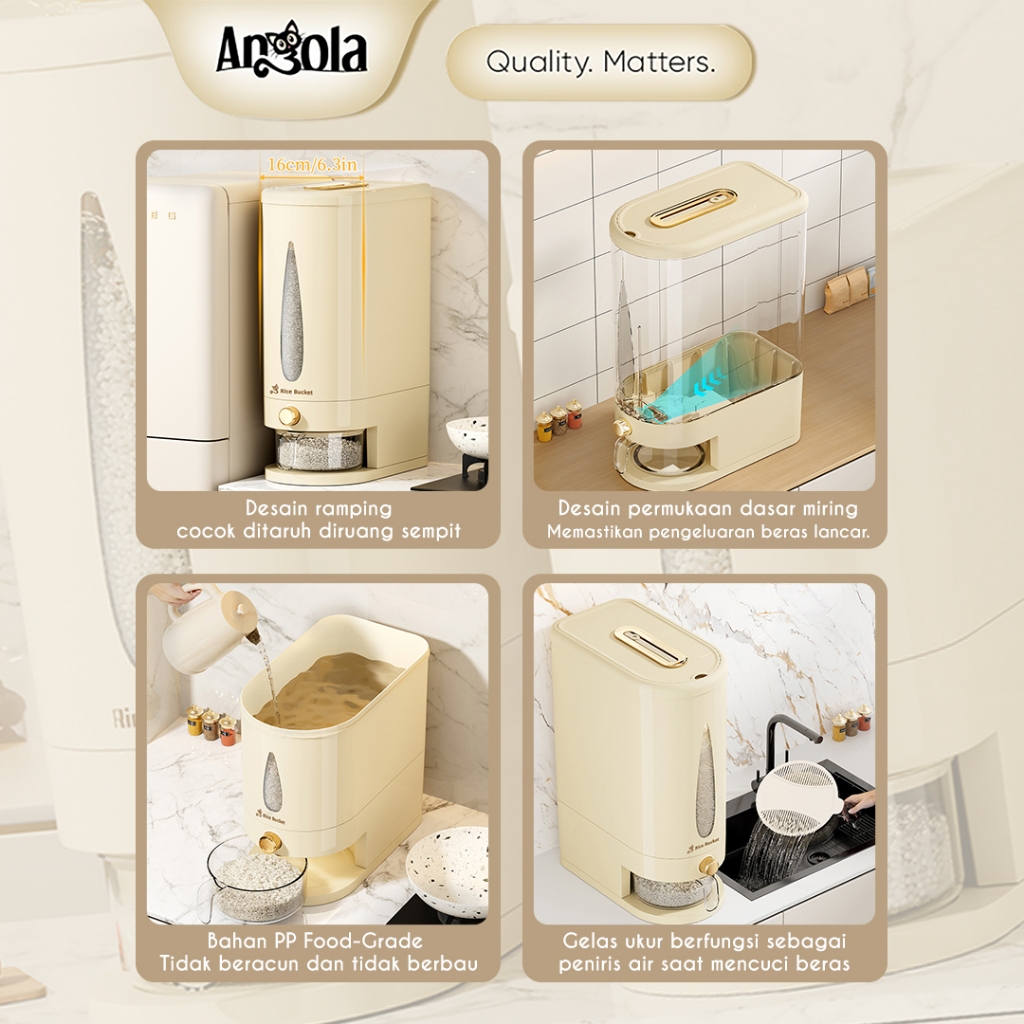 ANGOLA DISPENSER BERAS OTOMATIS 5-10KG E06-E07 TEMPAT PENYIMPANAN BERAS FOOD GRADE ANTI KUTU