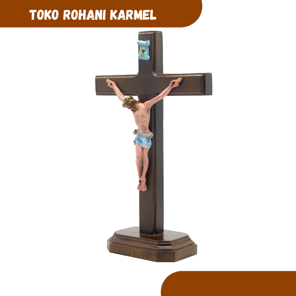 SALIB DUDUK KATOLIK 15-25 CM (KARUNIA) / SALIB MEJA DUDUK KATOLIK / SALIP / PATUNG SALIB YESUS