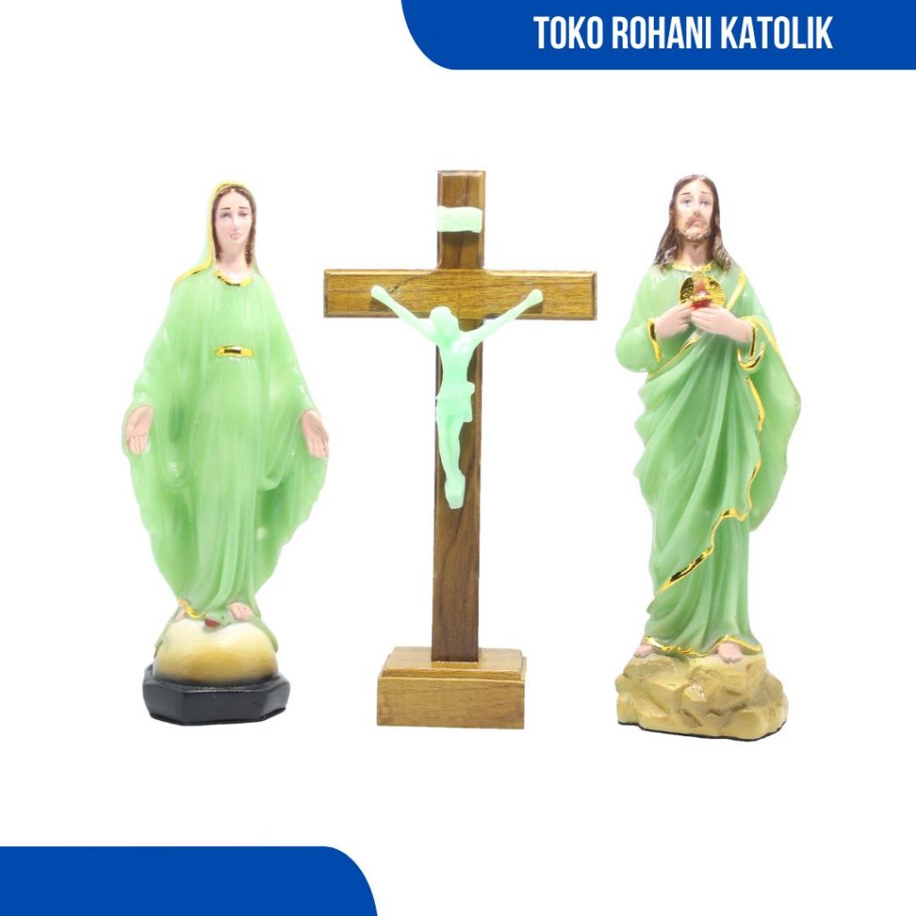 PAKET PATUNG + SALIB DUDUK FOSFOR 20 CM / PATUNG YESUS - MARIA 20 CM FOSFOR - GLOW IN THE DARK / PATUNG KATOLIK / PATUNG BUNDA MARIA / SALIB DUDUK KATOLIK