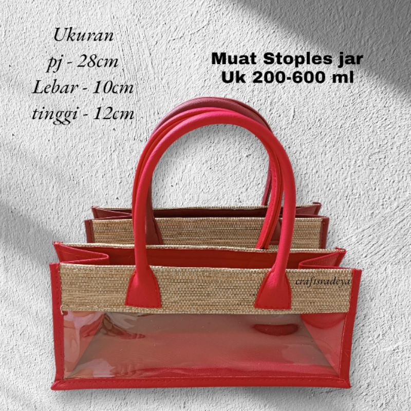 Hampers Mika 3 Stoples Jar/biggy Tas Mika Anyaman mendong Simple Elegant Natural / Bingkisan Imlek Natal Idulfitri
