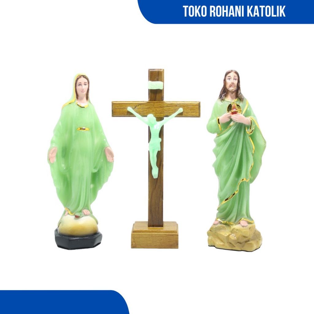 PAKET PATUNG + SALIB DUDUK FOSFOR 20 CM / PATUNG YESUS - MARIA 20 CM FOSFOR - GLOW IN THE DARK / PATUNG KATOLIK / PATUNG BUNDA MARIA / SALIB DUDUK KATOLIK