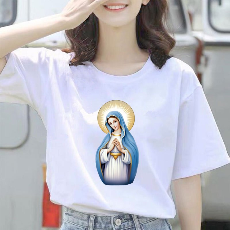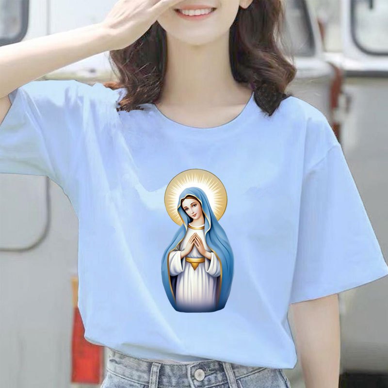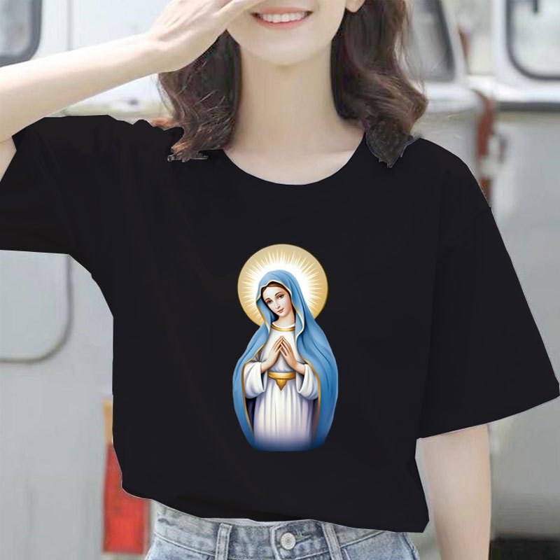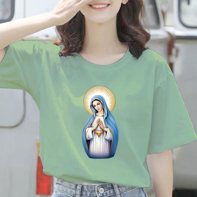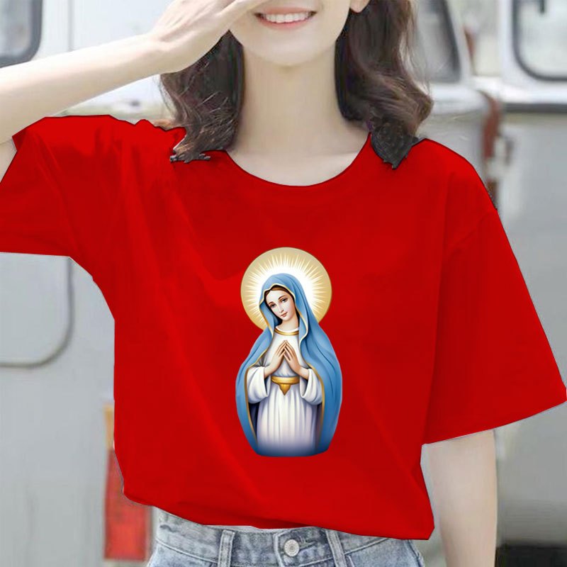 Baju Kaos Rohani Bunda Maria Atasan Unisex Wanita Pria Keluarga Lengan Pendek Natal Paskah