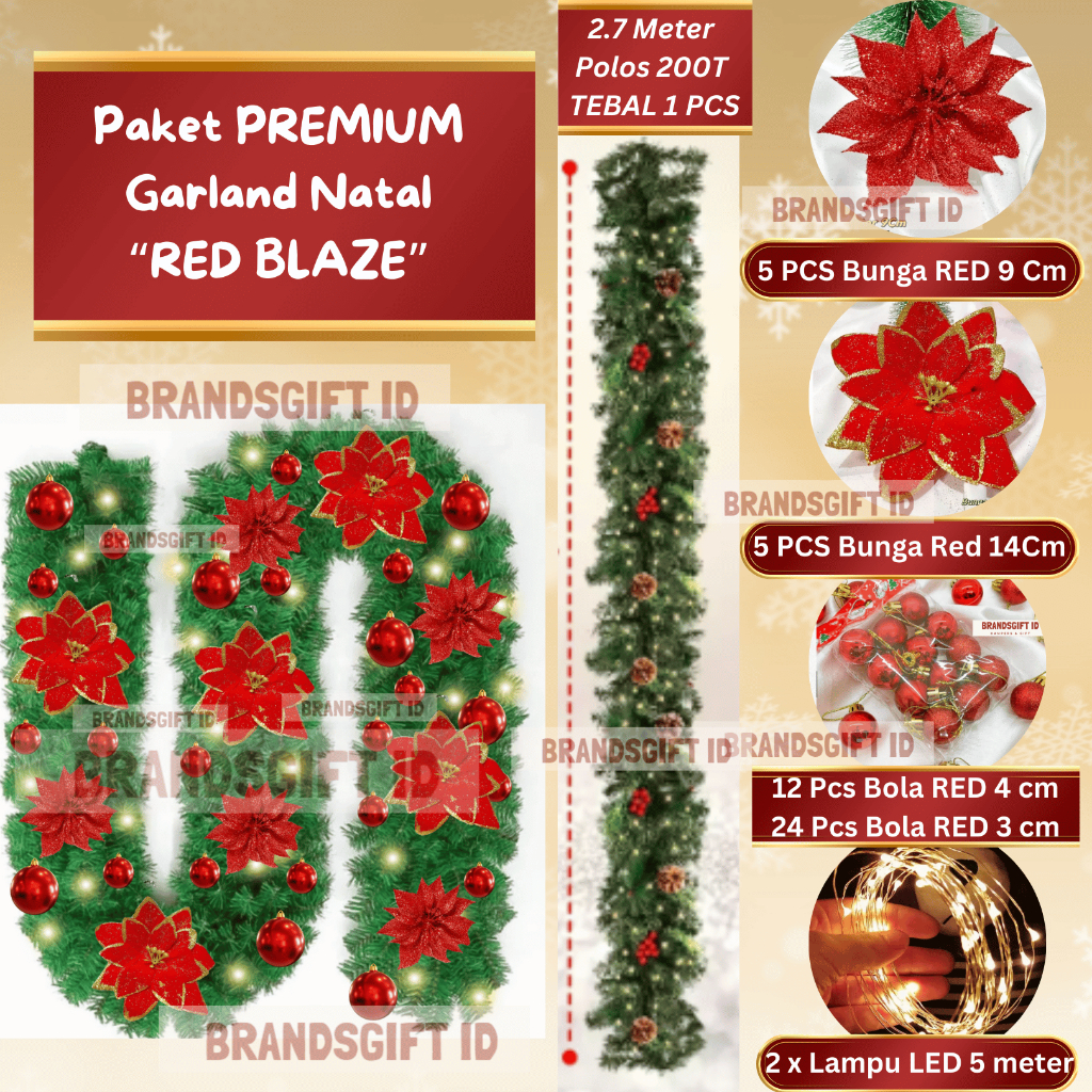 Paket PREMIUM Garland 2.7 Meter Full aksesoris Natal 4 Warna Dekorasi Tangga Garland / Dekorasi Dinding Garland Natal