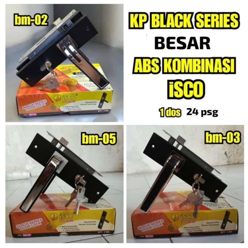 Kunci Pintu Besar ISCO 25cm 3 Anak Kunci Handle Selot Hitam Minimalis Kunci Rumah Gagang Kotak