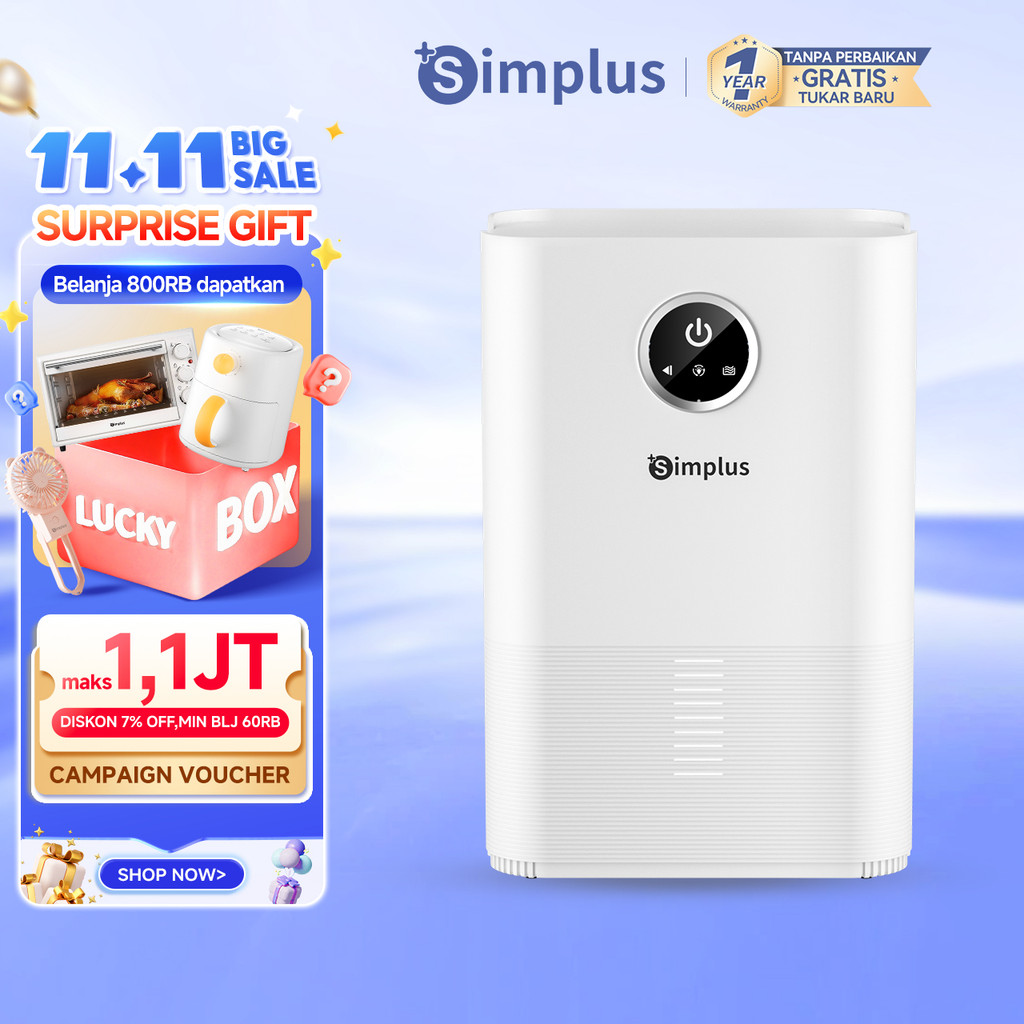 Simplus Dehumidifier 1L Dehumidifikasi Konstan Tidak Bising Pemantau Kelembaban Hemat Daya