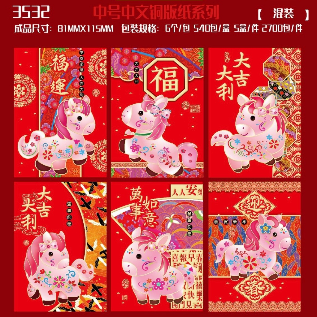 GROSIR ANGPAO PENDEK IMLEK SHIO KUDA & FUK 2026 / ANGPAO SINCIA ISI 6 / AMPLOP IMLEK