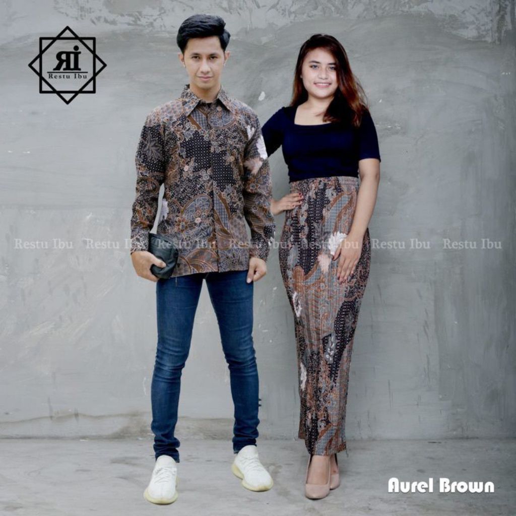 Couple Kebaya Blouse Aurora Selendang Tille Set Kemeja Batik Pria Motif Aurel Mocca / Kebaya Warna Brown