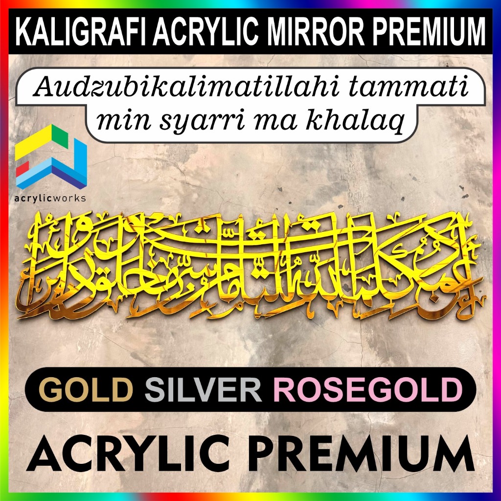HIASAN DINDING KALIGRAFI AUDZUBIKALIMATILLAHI TAMMATI MIN SYARRI MAA KHALAQ ACRYLIC PREMIUM MEWAH MURAH MERIAH