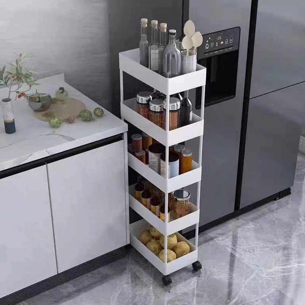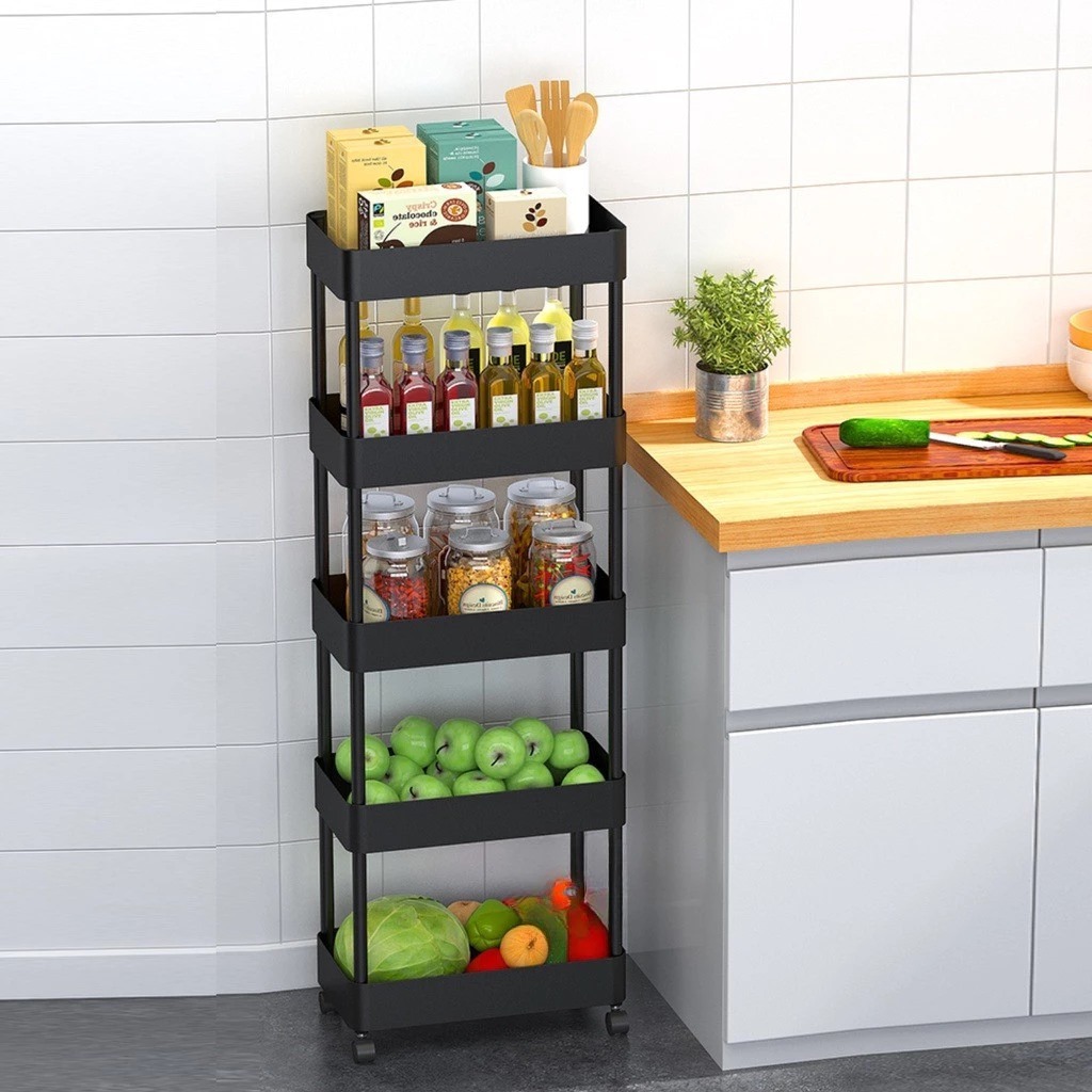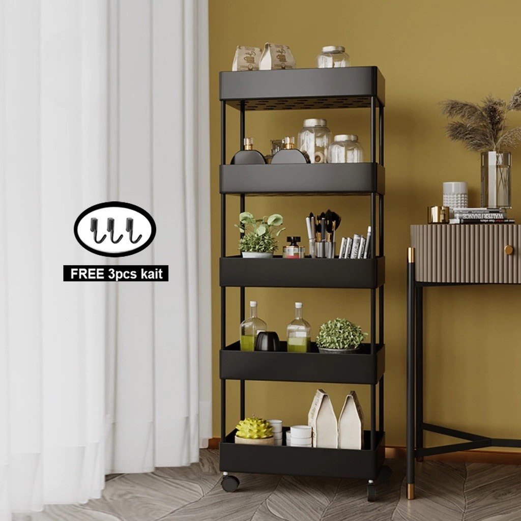Square rak dapur rak kamar mandi rak troli rak susun serbaguna rak dorong 5 tingkat dengan roda