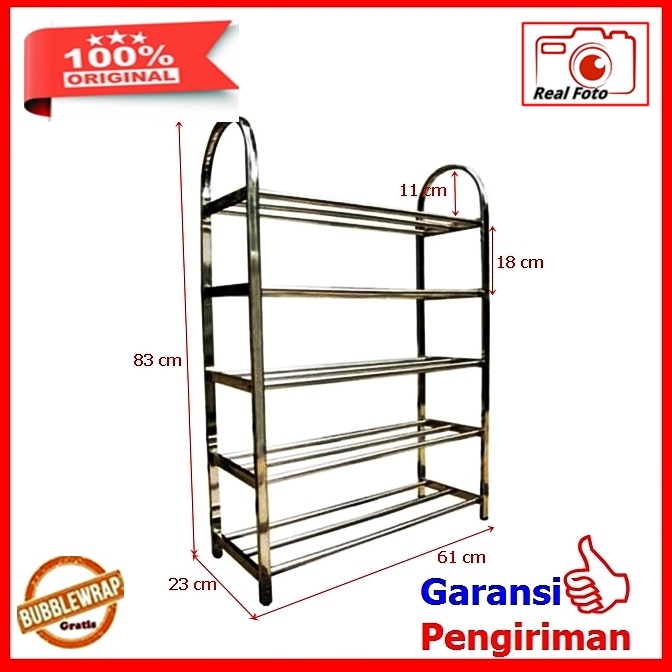Rak Sandal Rak Sepatu Susun Rak Susun Serbaguna Stainless 5 dan 4 Susun Full Stainless Tebal