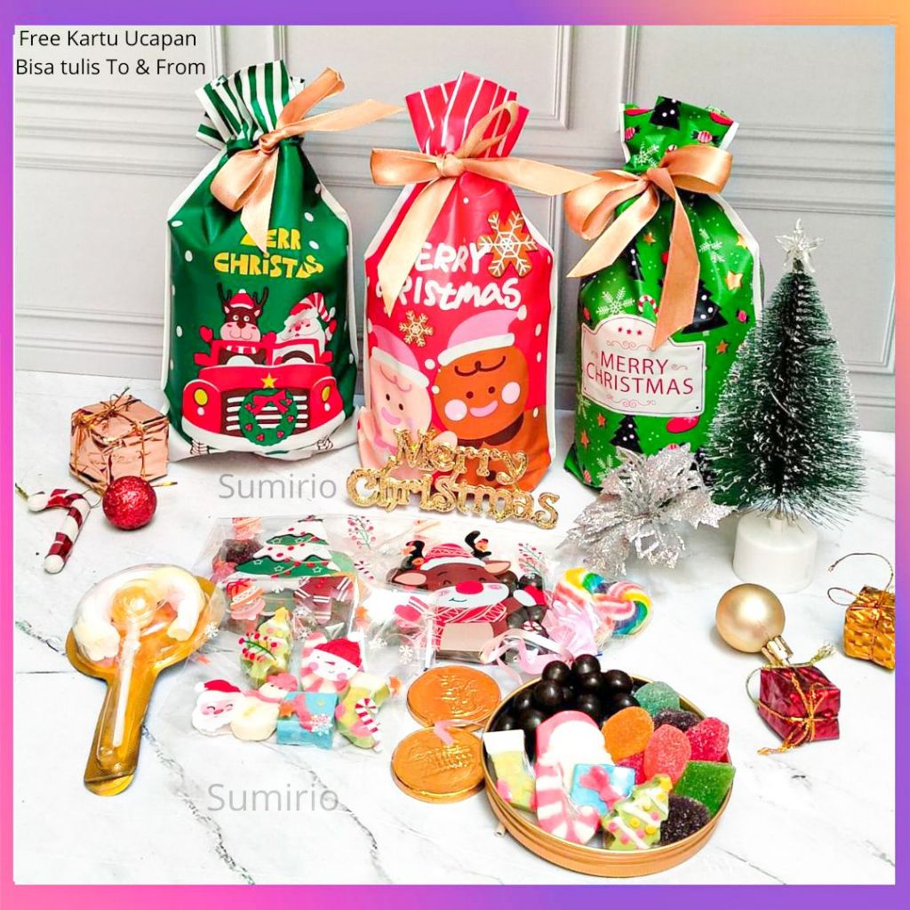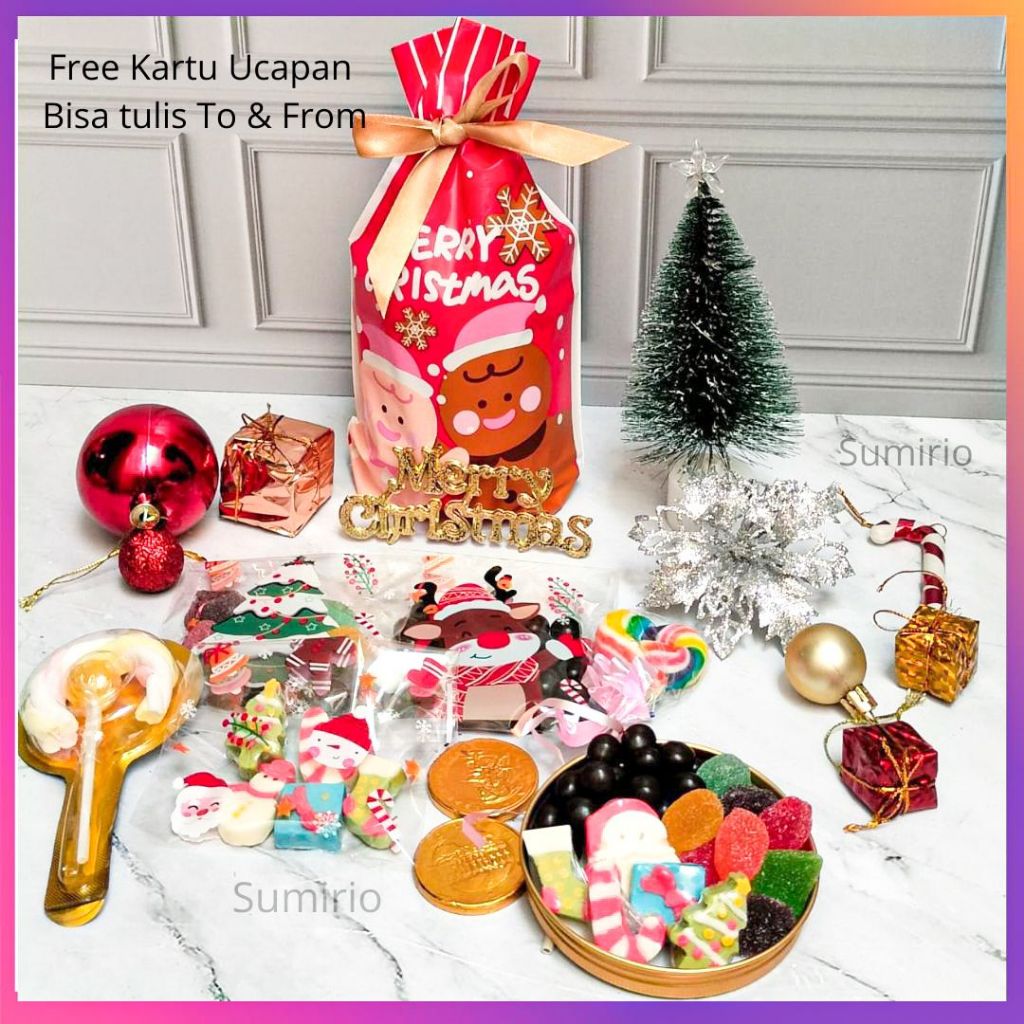 Parcel/Hampers/Bingkisan/Mini Bag Natal/Christmas isi Permen Mashmallow, Permen Lolipop, Coklat Natal, Coklat Koin kuningan mengkilap,Permen Jelly