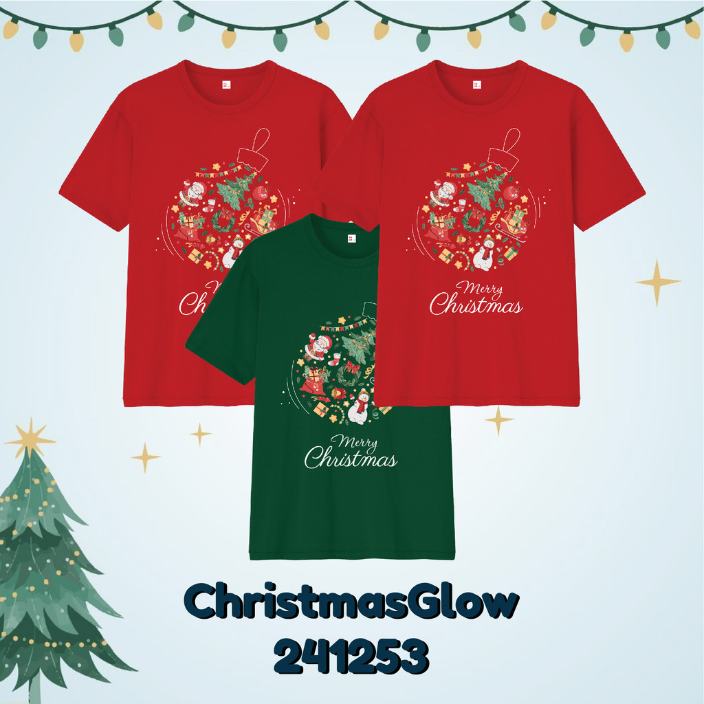 Baju Kaos Natal Bayi Anak Remaja D3W4SA Christmas Series kuningan mengkilap Glow Ball Tree Bahan Katun Combed 30s