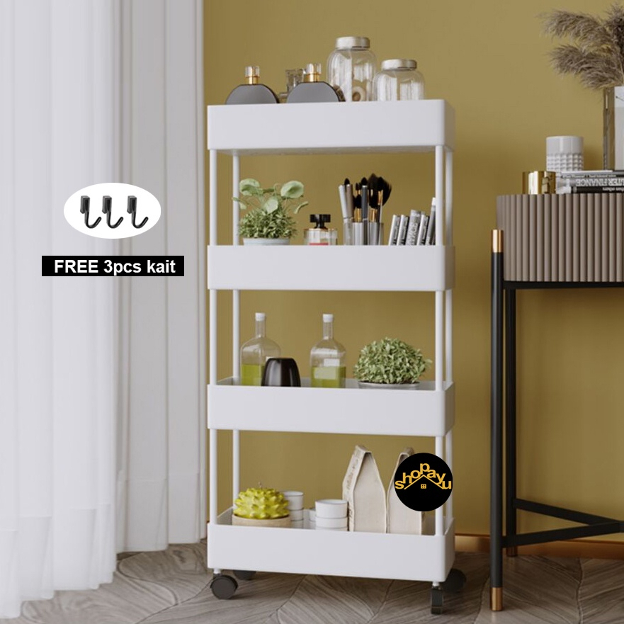 Rak troli Persegi / Sudut / 4 susun / plastik rak toilet rak kamar mandi rak dapur serbaguna rak susun portable roda