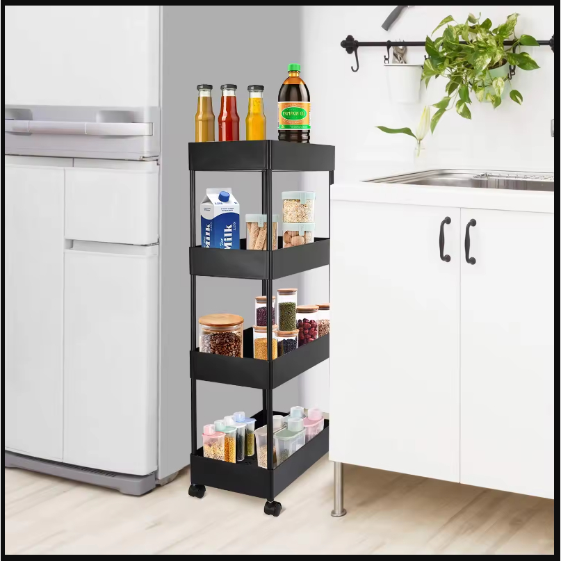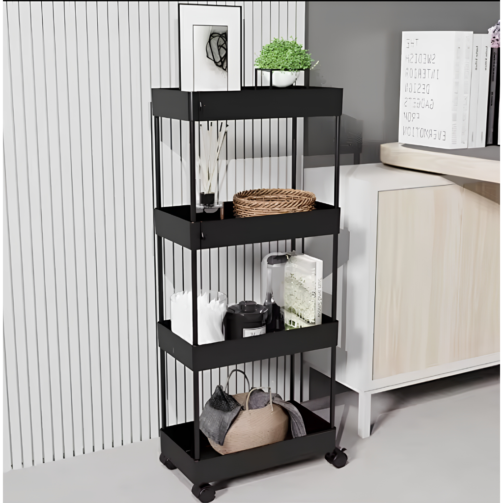 Kualitas Tinggi | Rak Serbaguna 4 Susun Rak Tingkat 4 Roda | Trolly Rack 4 Tingkat Rak Dapur Kamar Mandi