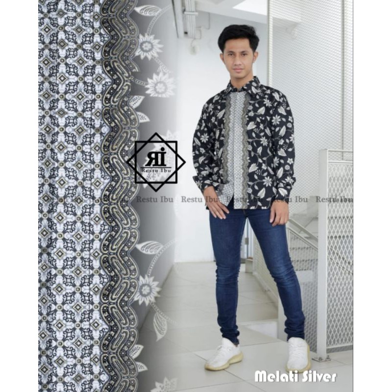 Couple Kebaya Brokat Kancing Depan / Kebaya Busui / Couple Kemeja Batik Melati Silver/ Couple Kebaya Keluarga